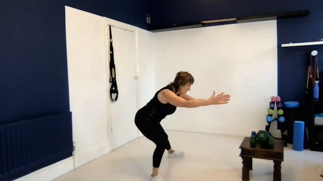 In todays session we use a chair sofa or bed to do some of the exercises. Sit to stand squats SL split lungs press ups and arm combo to finish.